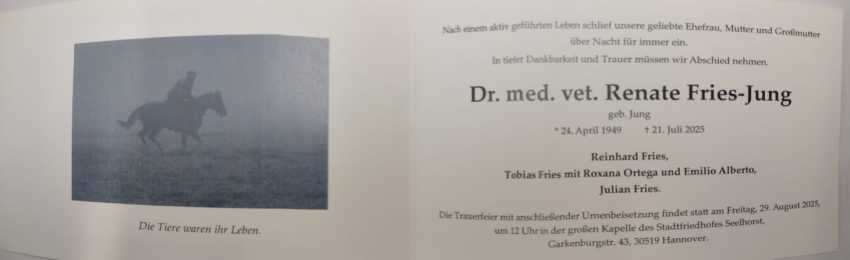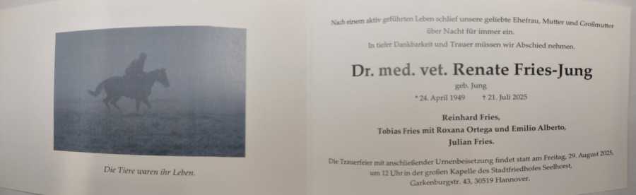 Wie einige bereits wissen ist Frau Dr. Fries-Jung vor kurzem sehr plötzlich verstorben.